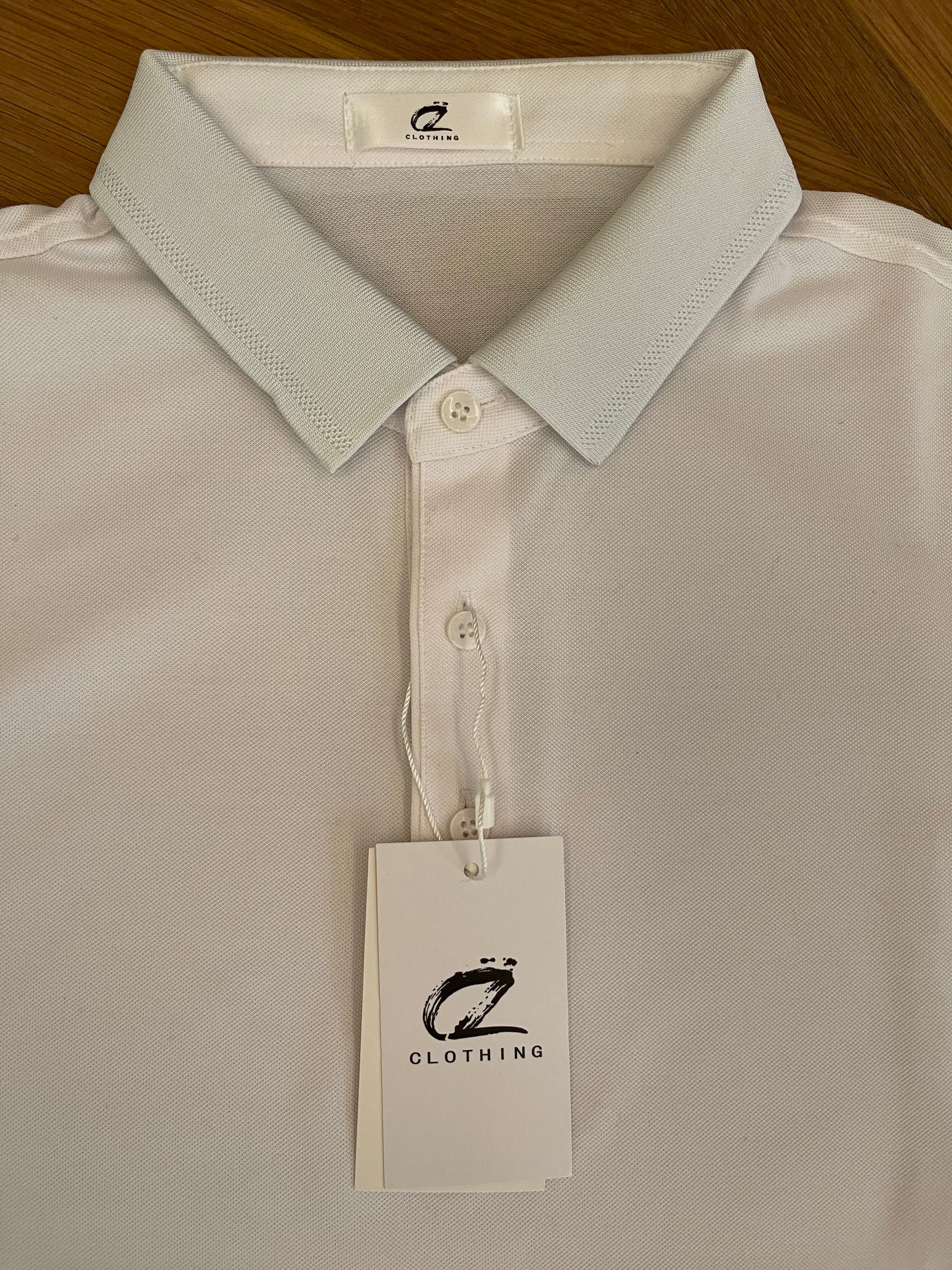 CZ CLOTHING Classic Fit Short Sleeve Solid Soft Cotton Quick-Dry White Polo Shirt