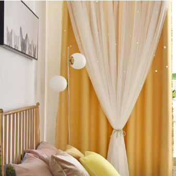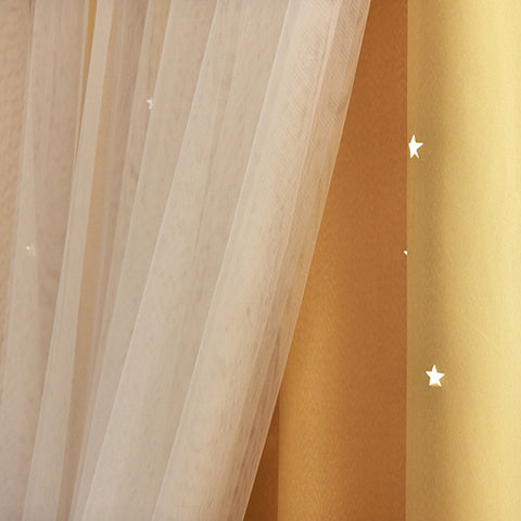 UNIQUE DESIGN: Curtains constructed with 2 layers, has 2 MODEL, Plain VS Star Cut-Outs, Plain set gives you a more blackout effect. Star-cutout ones give you a more dreamy starry effect. We use high-tech hollow technology cut edges and corners, leaving the star shape intact and clearer. When the sun shines in, stars will emit light, through the screen, forming a dream starry sky.