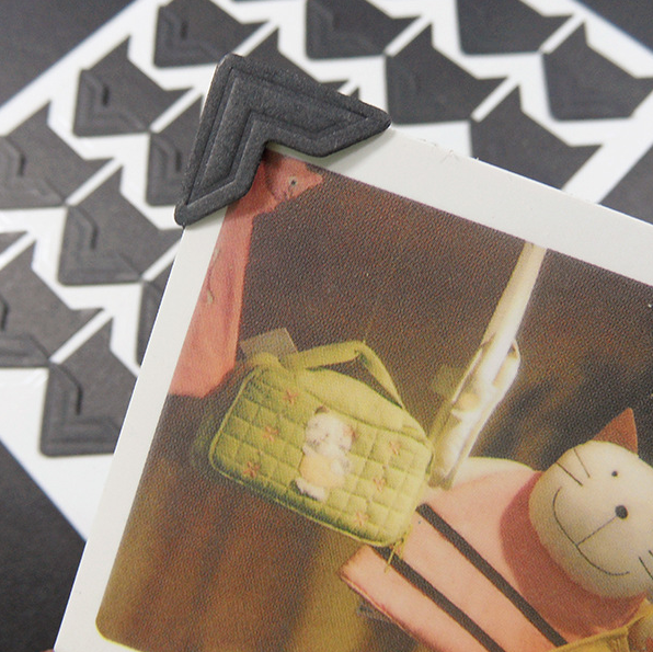 3、 Just peel photo corner off from sheet and apply directly to album pages, or slip over corner of a photo and position on album page.