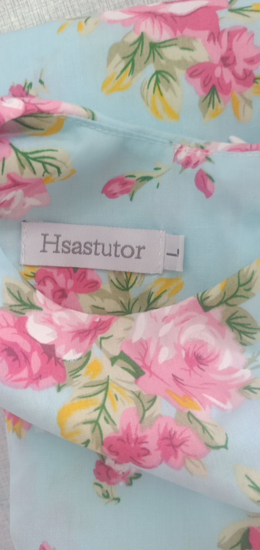 Hsastutor women dresses modern stylish blue elegant high waist printed cotton summer casual dress
