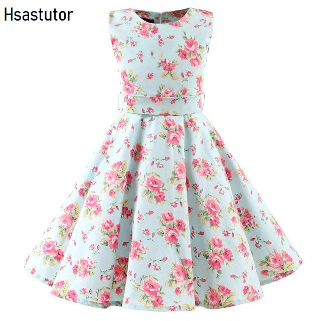 【Design】: Girls floral dresses with detachable belt, concealed back zipper closure, 50s sleeveless party dresses, vibrant flower patterns, polka dot prints, full circle vintage dress in summer.