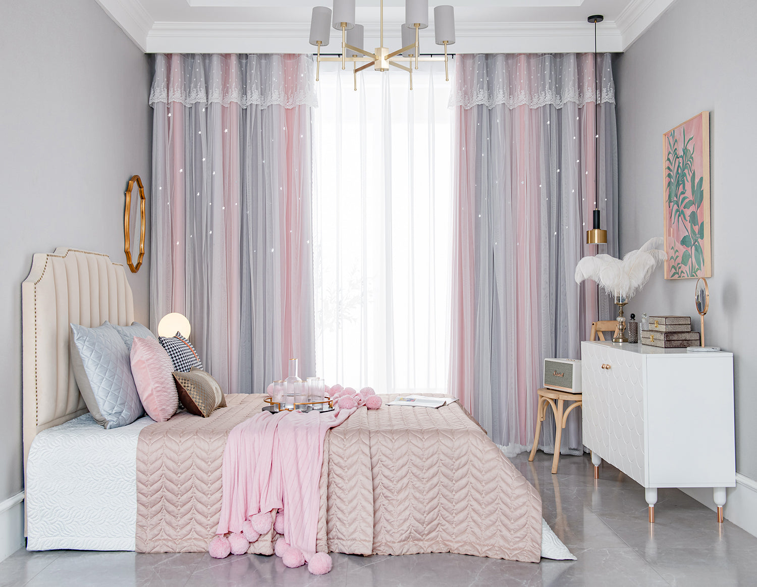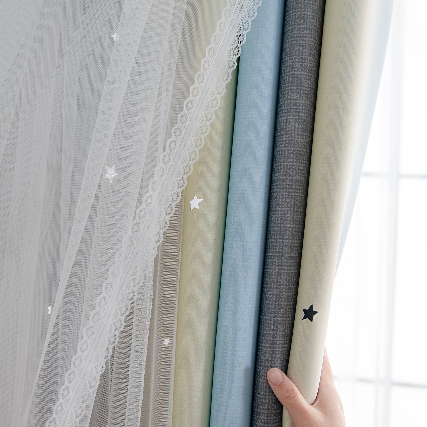 2、Hollow Star: Die-cut stars curtains decorate your windows with distinctive style. Imagine the sunshine through the Hollow Stars into the room, casting a beautiful shadow. There is a feeling of moving the stars into the house.
