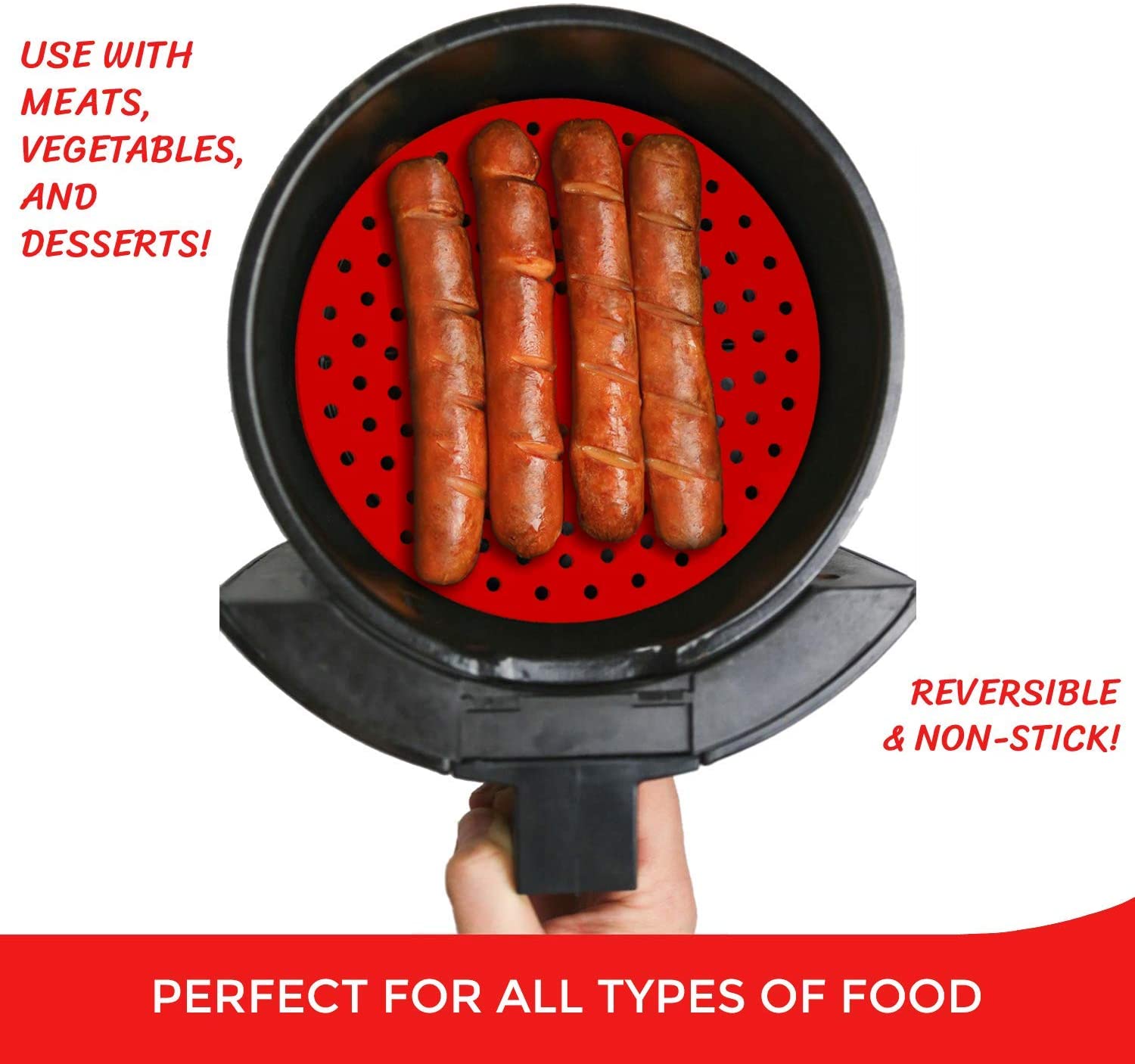 4、MAXIMUM AIR FLOW DESIGN – Air Fryer Liners feature a perforated design to ensure optimal air flow around food items for even heat distribution. Our silicone air fryer mats were created to work with your appliance as a performance air fryer accessory