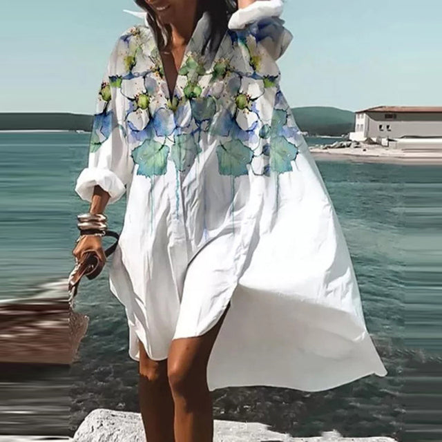 Oversized Shirt Dress Women Summer Casual Print Button Long Sleeve Loose Beach Dresses Female Elegant Bohemian Vacation Sundress