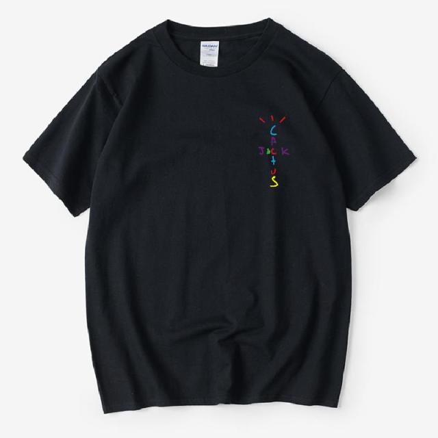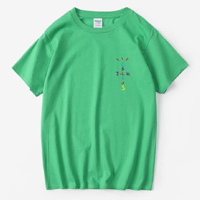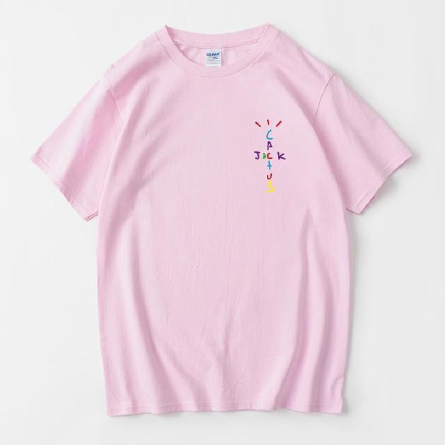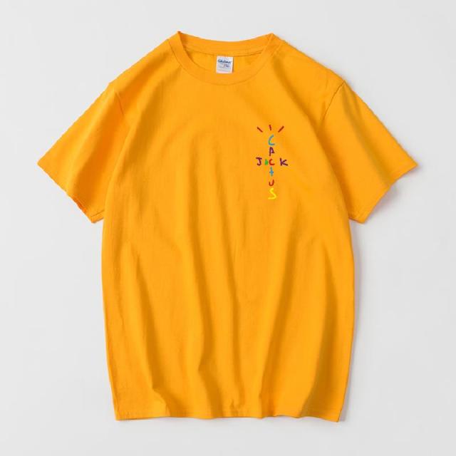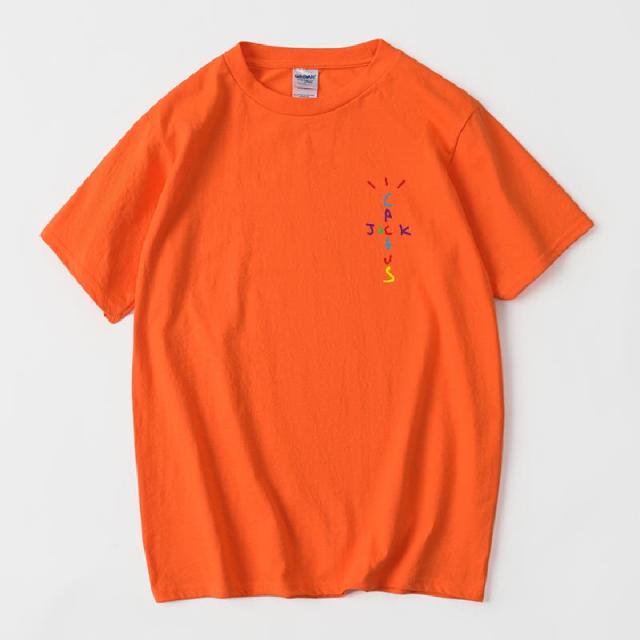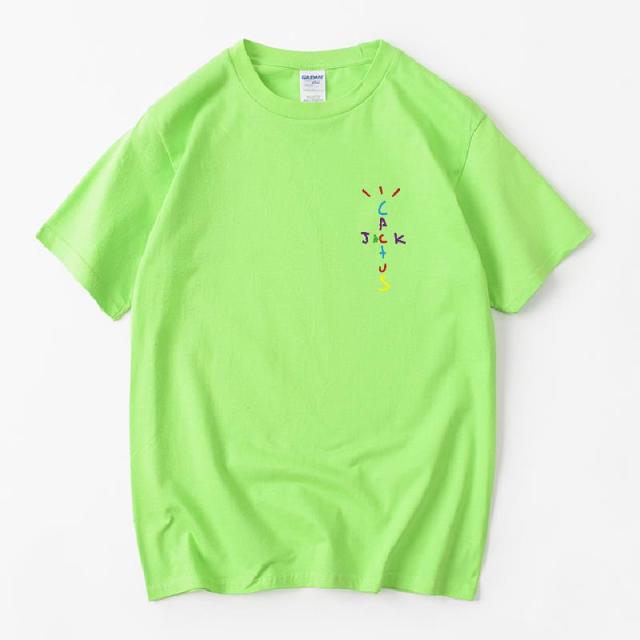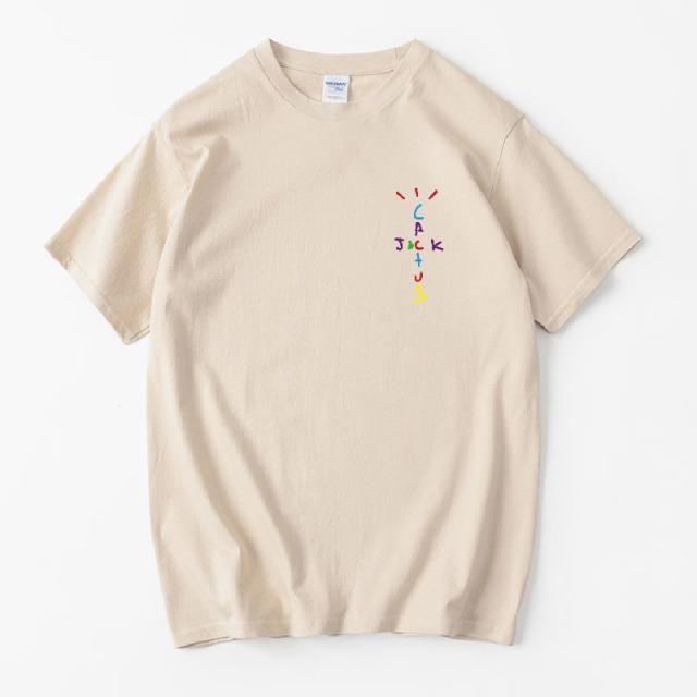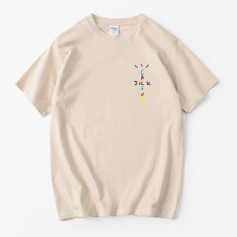 Rapper Travis Scott Cactus Jack Rainbow Alphabet Print T-Shirt Hip Hop Quality Cotton Short Sleeves Men Women Oversized Tops