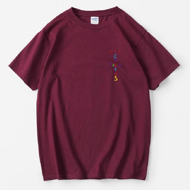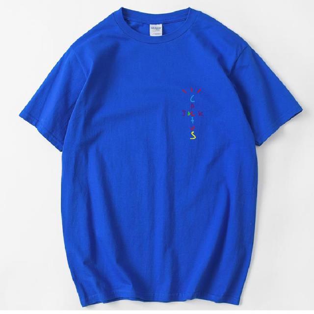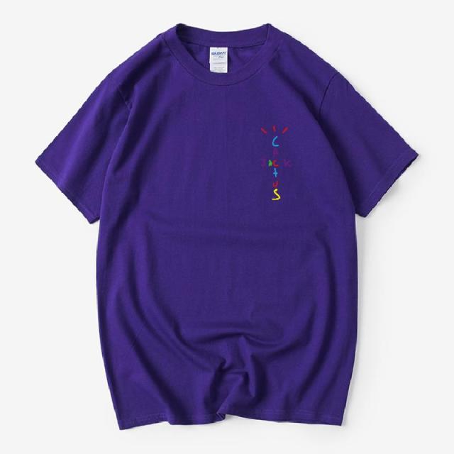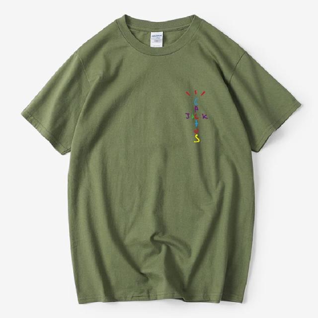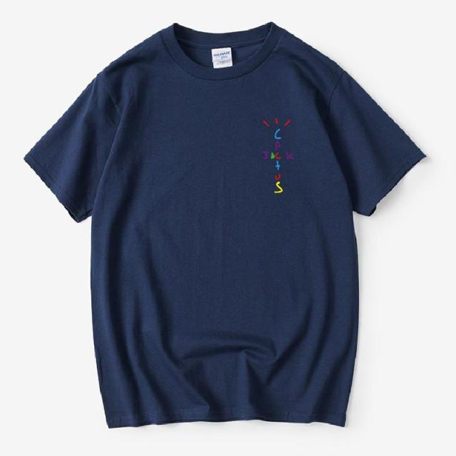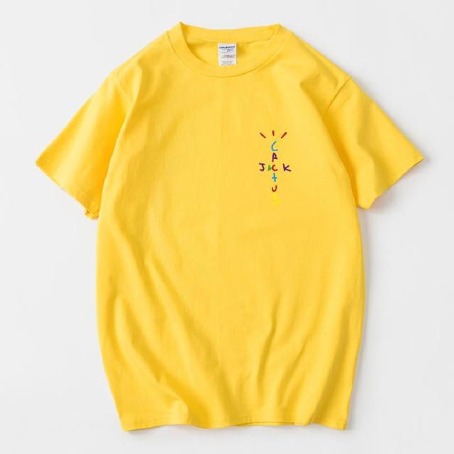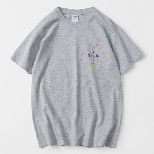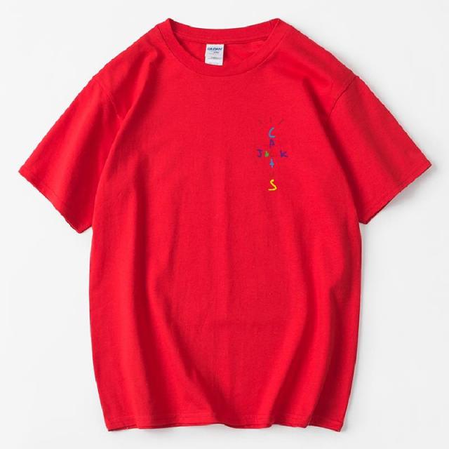 Rapper Travis Scott Cactus Jack Rainbow Alphabet Print T-Shirt Hip Hop Quality Cotton Short Sleeves Men Women Oversized Tops