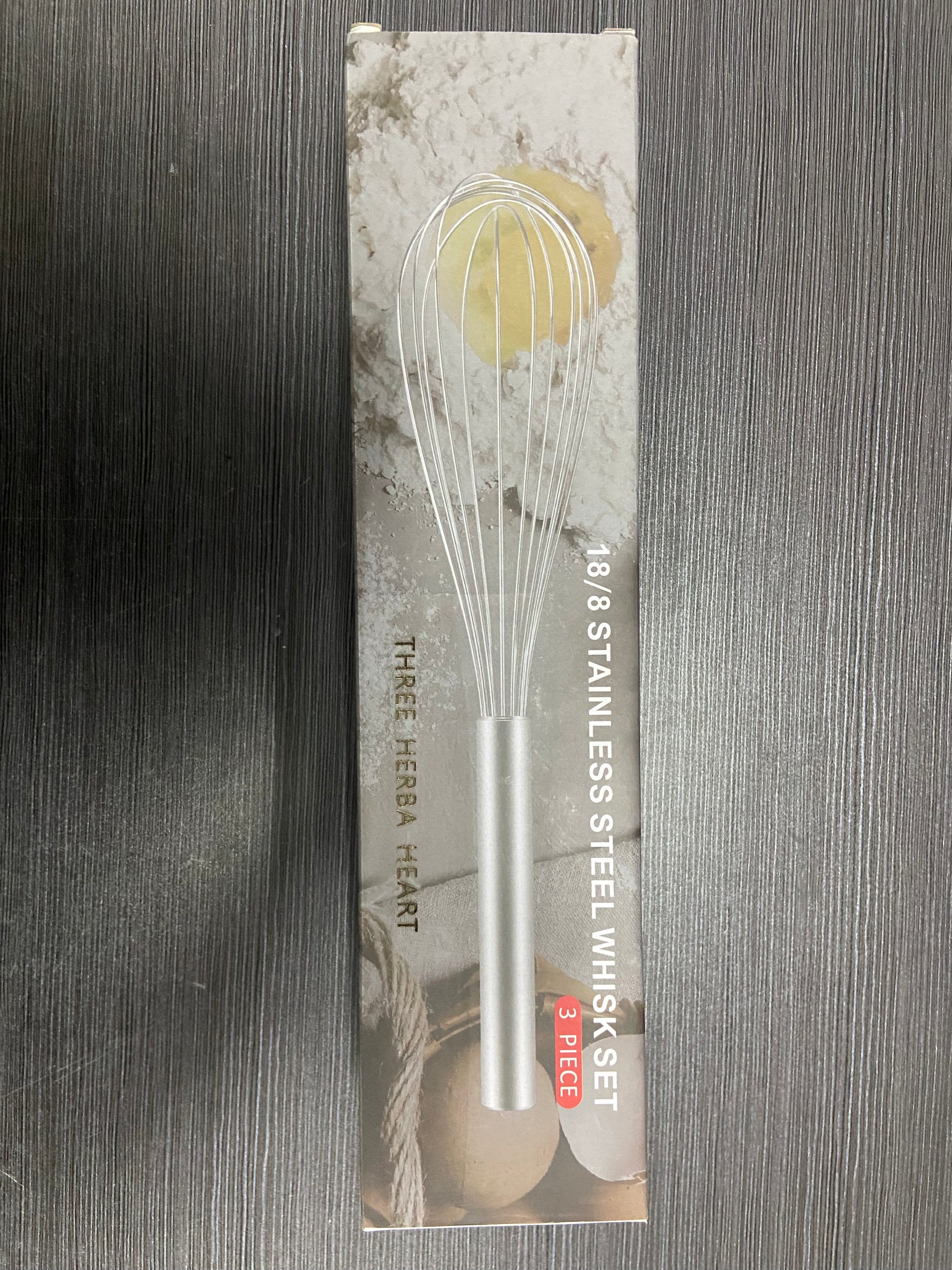THREE HERBA HEART 3 Pieces durabld food grade hand stainless non-electric egg beaters