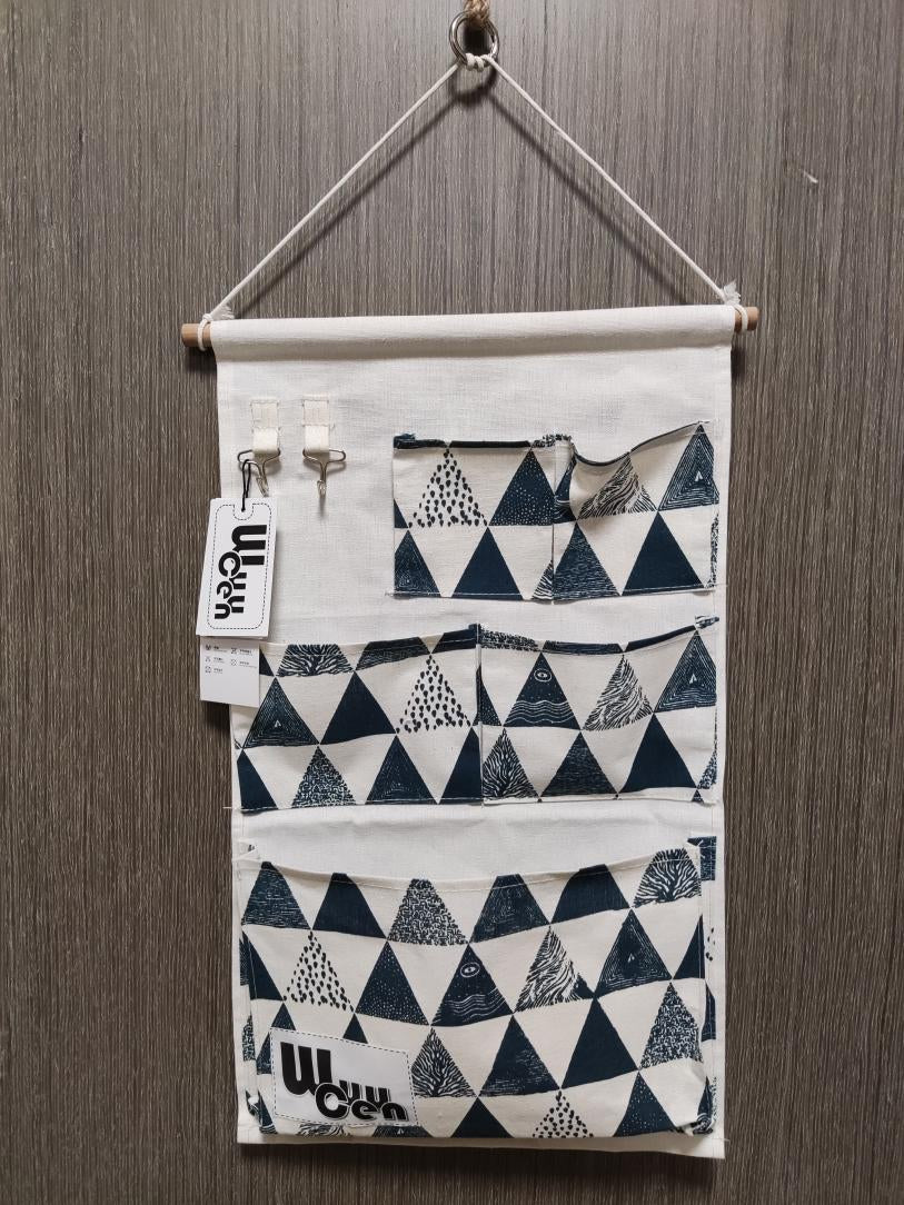 WuuCen Eco-Friendly Triangle and Grid Design Cotton Wall Hanging Organizer Storage Bag